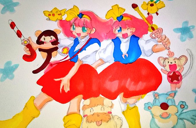 ミンキーモモが トレンド入りしているので、 私が11年前にアニメディアに掲載された ミンキーモモ&まどかイラストを 貼りますね💞(⋈◍>◡<◍)。✧♡ #ミンキーモモ #魔法少女まどかマギカ #アニメディア #絵描きさんと繋がりたい