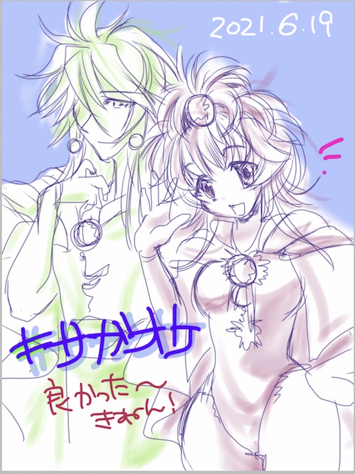 深夜の落書きからの寝落ち〜😇 (塗り適当でごめんなさい💦 ) おはようございます😃 今日からのガチャ、この一人と一匹狙いで回します!! この組み合わせ、大好物なんですよね〜✨ こいこい🙏🙏 #ミンサガRS #ロマサガRS祝4周年