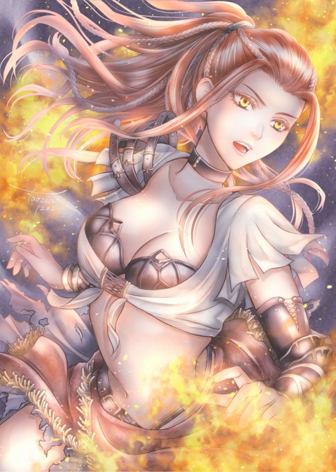 改めてミンサガリマスター発売おめでとうございます🥰❤️お祝い絵は二周目予定のアイシャちゃんで✨ちっちゃな娘さんに斧を振り回してもらうのって最高ですよね😊お祭りなのでタグ付きで! #ミンサガRS #ミンサガリマスター #ミンサガ