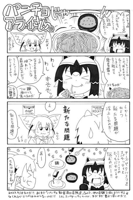 こんばんはなのだ! 早速、今日パンチョで食べた「ミートソース、ミート別皿」をマンガにしたのだ! みんなもパンチョに行ってトライしてみるのだ! ちなみに、新宿南口店なのだ! #パンチョ #ミートソース #パンチョアライさん