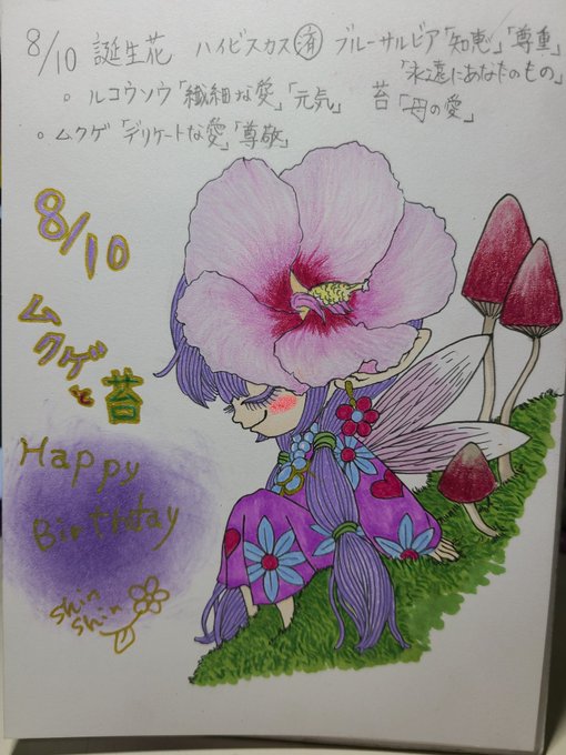 8月10日生まれの皆さん誕生日おめでとう😁😁✨ #8月10日 #花の日 #毎日誰かの誕生日 #誕生日 #花の妖精シリーズ #誕生花 #花言葉 #毎日投稿 #イラスト #誕生日おめでとう #HappyBirthday #ムクゲ #花のある暮らし #花 #illustration #handdrawing #FYP #オリジナルキャラクター