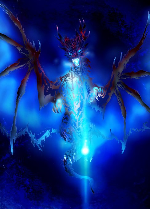 冥府に座す冥界の王 この前偵察ムフェト行って描いてみたくなった 幽境の谷の脱皮する前のゼノジーヴァ は〜満足😌 #MHWIB #モンハンワールドアイスボーン #monsterhunterworldiceborne #ゼノジーヴァ #ムフェトジーヴァ #Xenojiiva #イラスト