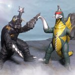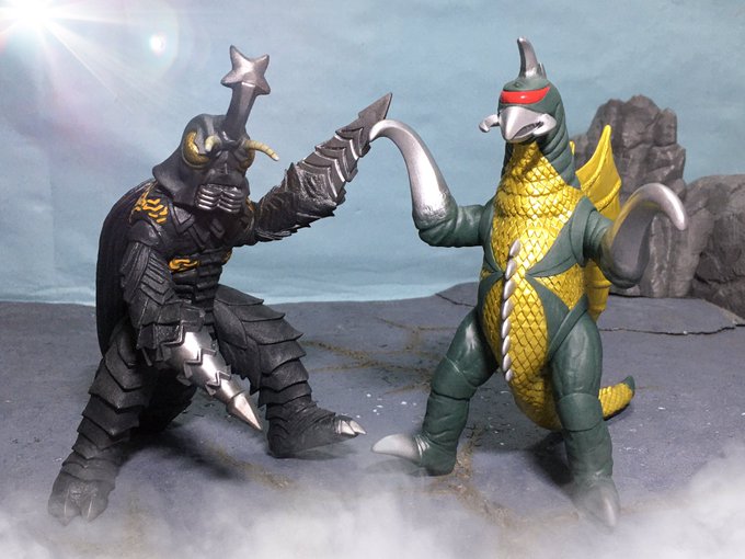 #夜のフィギュア撮影会 お題『フリー』 ゴジラ対メガロ!今年50周年!←メガロはY・MSF製だからめっちゃクオリティ高い!😄 #ゴジラ対メガロ #ゴジラ対メガロ50周年 #ゴジラ #メガロ #ガイガン #ジェットジャガー #ソフビ #YMSF #ムービーモンスターシリーズ #ムビモン #オモ写