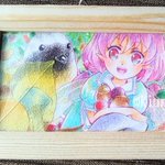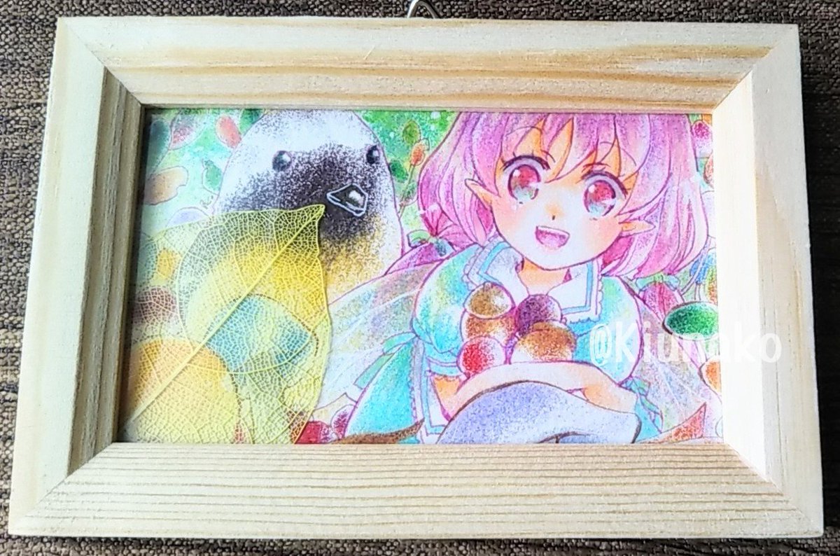 #ムーンハーベスト展2 オレンジ色のカボチャを頑張って塗ったのに、フォトフレームに入れたら頑張ったところが隠れちゃった笑🤣 これも名刺サイズ、色鉛筆です✨ 展示会もうすぐだと思ったらドキドキしてきた〜💦