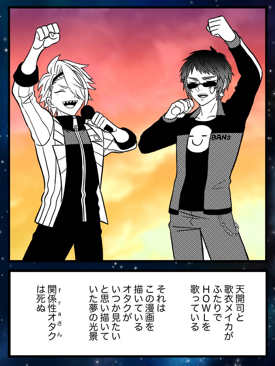 吠える漢たち ふたりが一緒に歌ってくれて本当に本当に嬉しかった あと100万回一緒に歌ってほしいし歌みたもしてほしいし つかラジ歌衣メイカ回も待ってるしいっぱいコラボして #メイカワンマンライブ #漢気名画 #天絵画