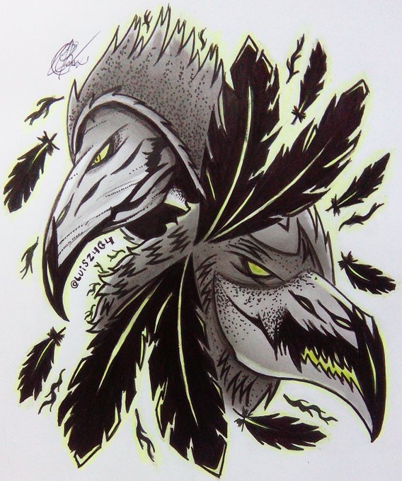 #inktober2021, whit my #oc (Mortems & Caim).☠️✒️👍 #Day5 #Raven. Always thanks for supporting. #イラスト #illustration #アニメ #anime #design #art #インク #Ink #inktober #オリジナルキャラクター #originalcharacter #メイジ #カラス