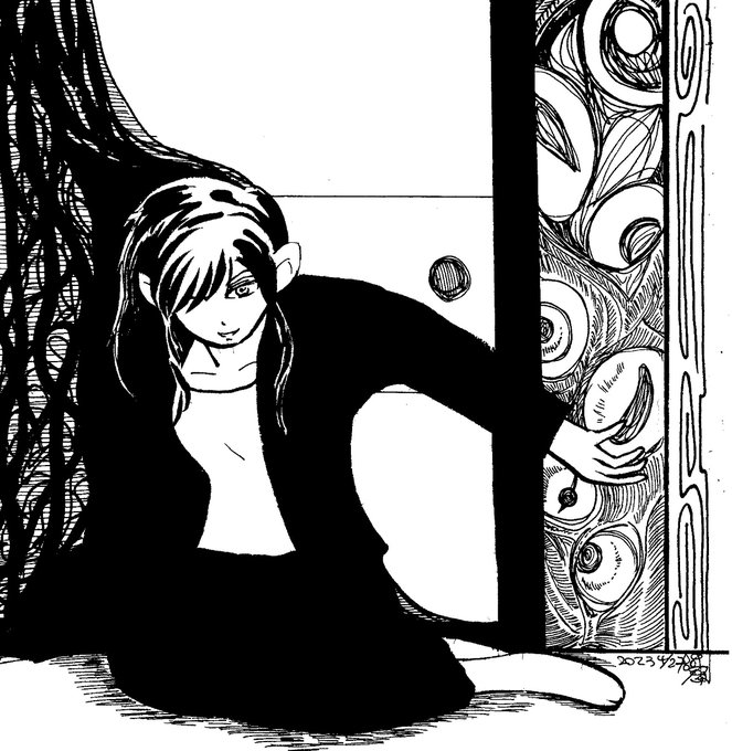 Ericaさま (2022年12月9日完成) 今日はEricaさまのモデルにした同級生のお誕生日なのです 下々の者! Ericaさまを祝いなさい! #作品 #色鉛筆 #オリジナル #オリキャラ #ウチのお姐ぇさんズ #Ericaさま #メカクレ #和装ドレス #猫 #月夜 #背景ホンキのイッパツ描き #お絵描き好きな人とつながりたい