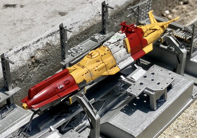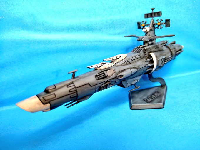 #今月作ったプラモ晒そうぜ たまにはこのお題に… 今月?先月? 7月に完成したのは1点、 村雨型宇宙巡洋艦 「CAS-707 ムラサメ」 いつも微速前進0.5なのでこんなもんですね😅 この暑さが続くなら8月も厳しそう……😭 #メカコレ #宇宙戦艦ヤマト twitter.com/kope880/stat…