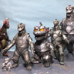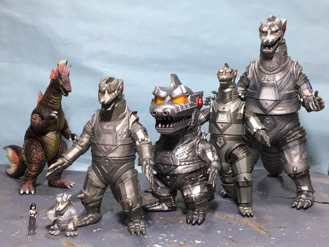 #夜のフィギュア撮影会 お題『集合』 メカゴジラ軍団が大集合!今日は #メカゴジラの逆襲 の公開記念日!😄 #メカゴジラ #MechaGodzilla #機龍 #3式機龍 #三式機龍 #ソフビ #ムービーモンスターシリーズ #ムビモン #東宝大怪獣シリーズ #モンスターアーツ #オモ写