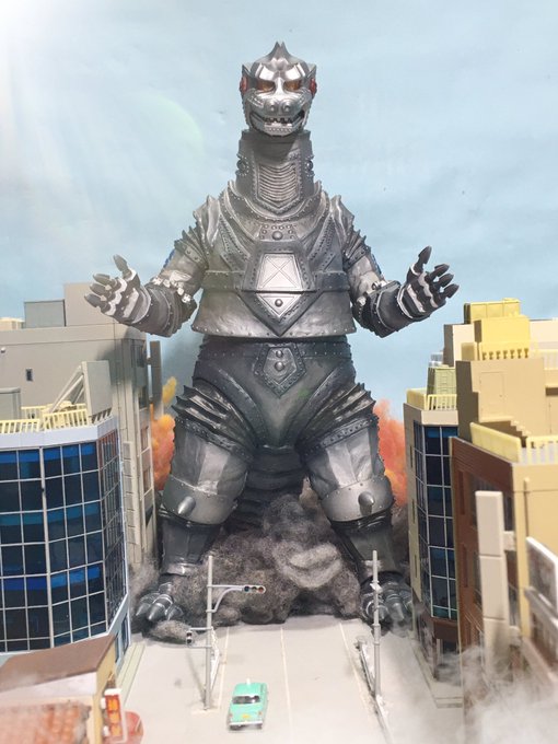 #夜のフィギュア撮影会 お題『フリー』過去作 メカゴジラの逆襲!←さんざん再掲😅 #メカゴジラ #メカゴジラの逆襲 #少年リック #ソフビ #エクスプラス #ゴジラ #Godzilla #MechaGodzilla #東宝大怪獣シリーズ #オモ写