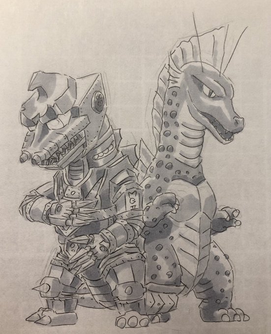 #夜のフィギュア撮影会 お題『相棒』 相棒であり分身でもあるサイボーグ少女とロボット怪獣! #メカゴジラ #真船桂 #メカゴジラ2 #メカゴジラ1975 #メカゴジラの逆襲 #東宝大怪獣シリーズ #少年リック #ソフビ #オモ写