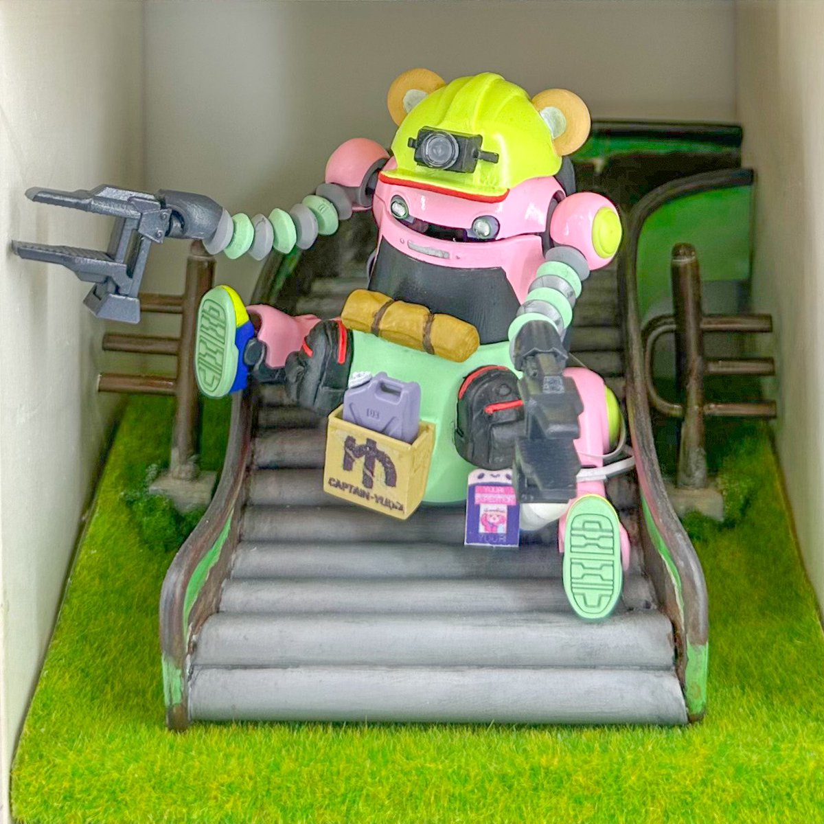 コンプレッサーと繋ぐチューブが切れたり、風邪や腰痛を乗り越えてやっと塗装終了〜 絶賛汚し中! あとはデカール用プリンタのご機嫌が戻れば…もう6月…いつ完成? #メカトロキューブ4 #メカトロウィーゴ