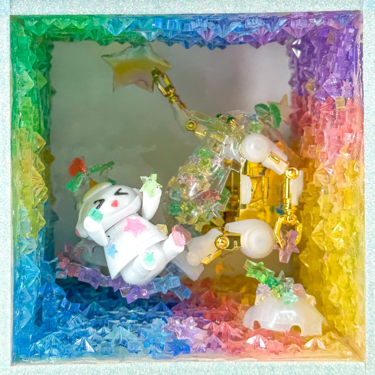 #メカトロキューブ4 その10 こちらは色使いが華やかゾーン。 「出荷します」ぴのべえさん 「メカトロ探検隊〜光る雪山でウィーゴさん凍ってる!!」ぷるたすまいるさん 「とぅいんくるぱーてぃー」わかば姐さん #メカトロウィーゴ #メカトロメイト