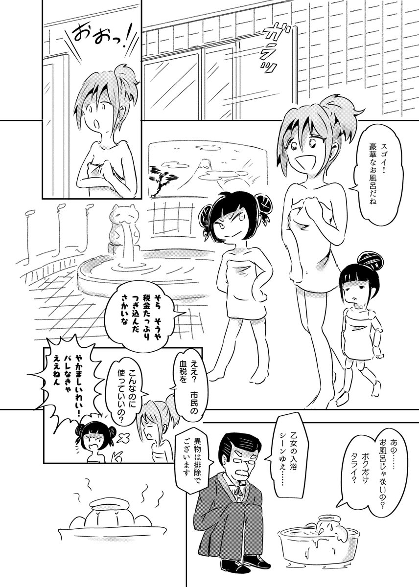 【漫画】メガサ・メルト少女 第13話 最初の挑戦(8) ※お風呂回 #メガサ・メルト少女 #絵描きさんと繋がりたい #芸術同盟 #創作の狼煙 #漫画が読めるハッシュタグ #創作漫画 #オリジナルギャラリー #イラスト #みんなで楽しむTwitter展覧会