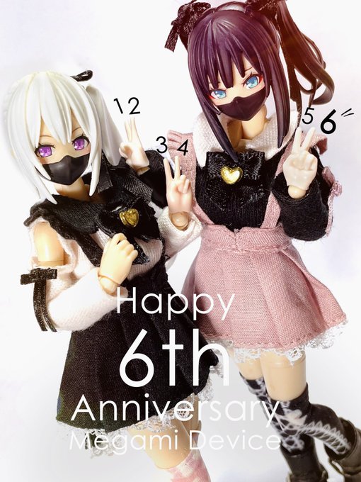遅くなりましたが6周年おめでとうございます✨ 去年5周年の配信でお便りご紹介いただいて、1年で戦う地雷ちゃんに成長しました💜🖤 忍者ちゃんのマスク、こういう使い方もアリですよね?!笑 これからも素敵な商品を楽しみにしつつリボンいっぱいで頑張ります💞 #メガミデバイス6周年 #メガミデバイス