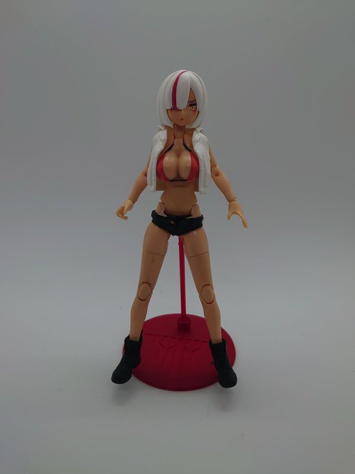 スカートの裏側はこうなっています。 よーく見ると塗装の粗が見えるのですが、これ以上は非常に大変なので、諦めます。 私なりに頑張ったかな( ¯﹀¯ ) #メガミデバイス #メガミフクキタル twitter.com/fitlife315/s…