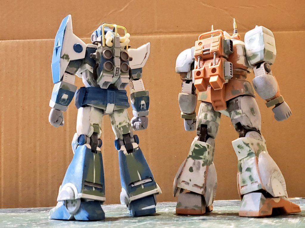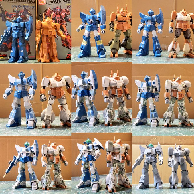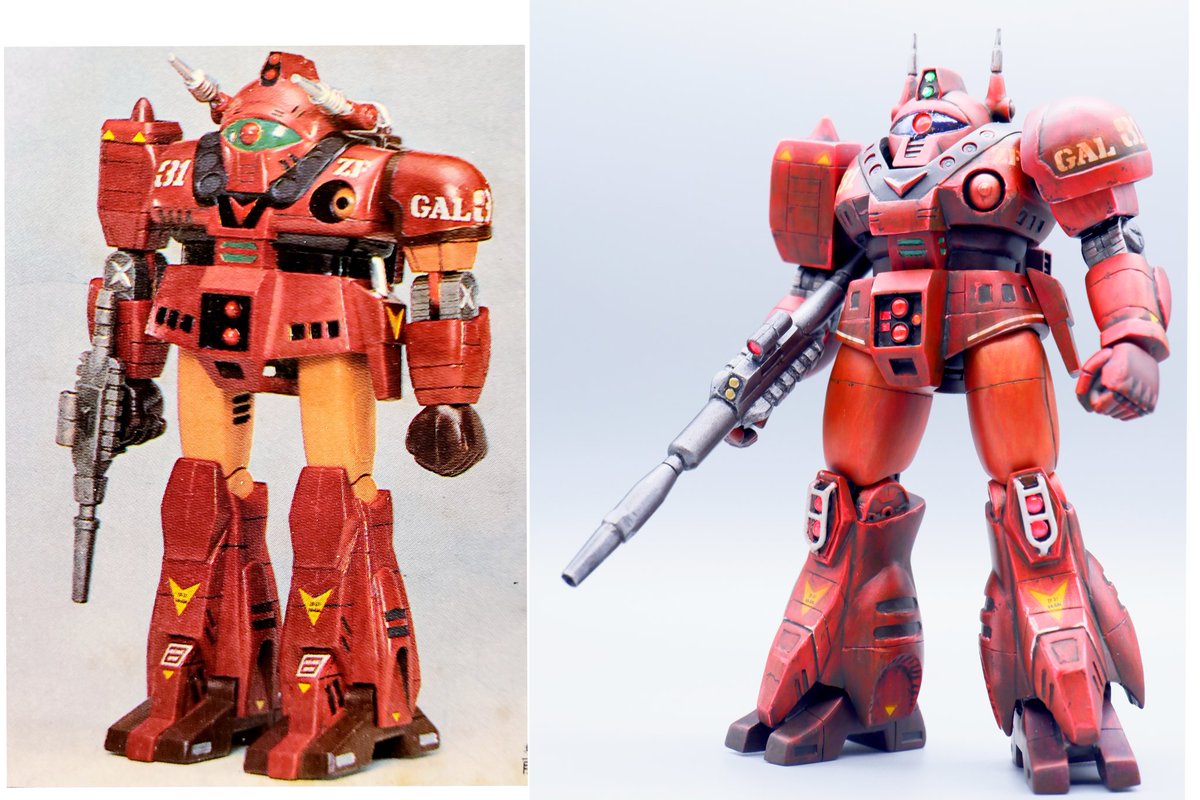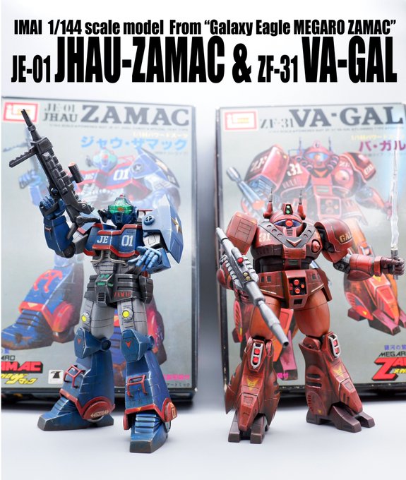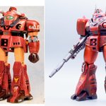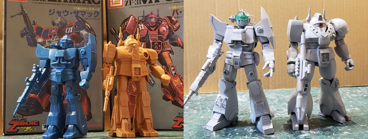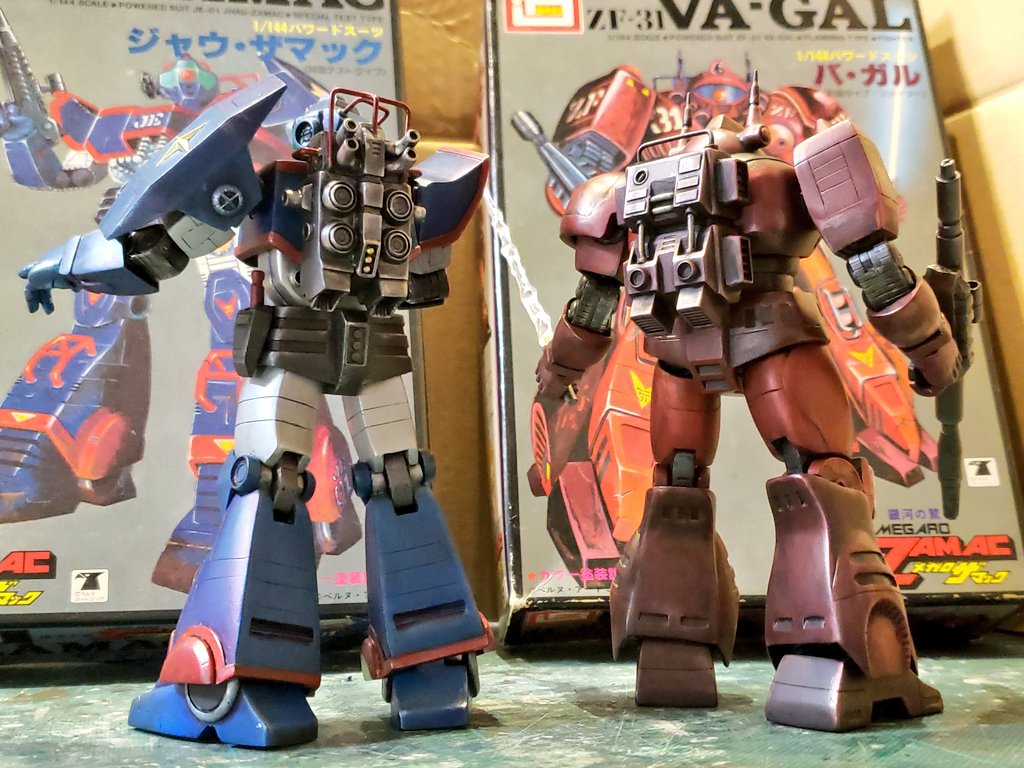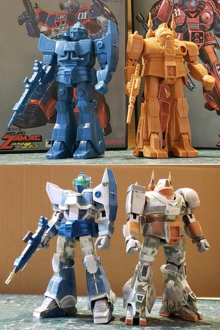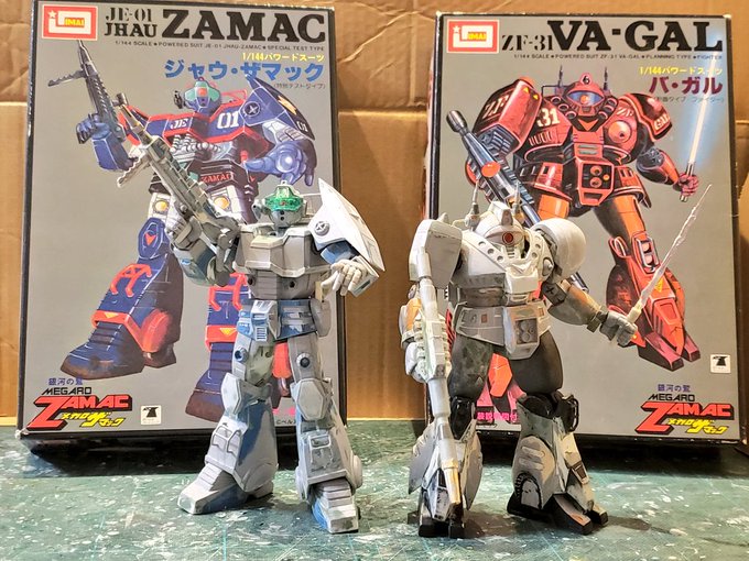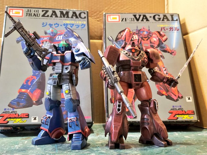 ジャウ・ザマックとバ・ガル、同じくらいのアングルでキットの完成写真と比べてみました。結構どんな感じで改造してるかわかりやすい気がします。特に背面はあまり見せてないかと思いますが結構頑張ってます😅 #酒餅12チャンネル #メガロザマック #旧キット twitter.com/holy_oden/stat…