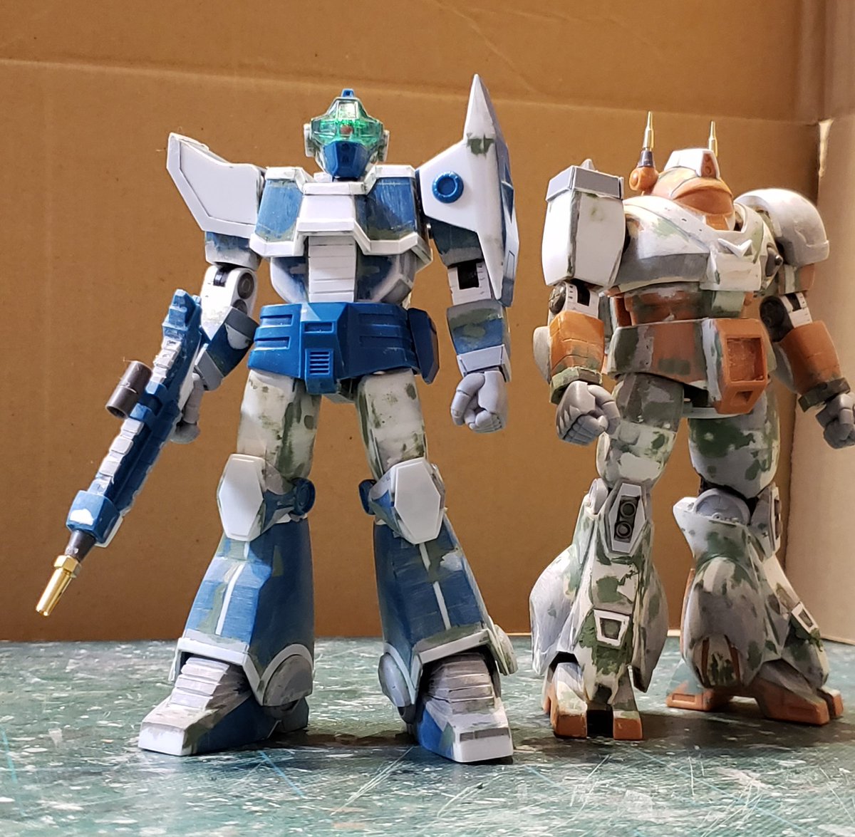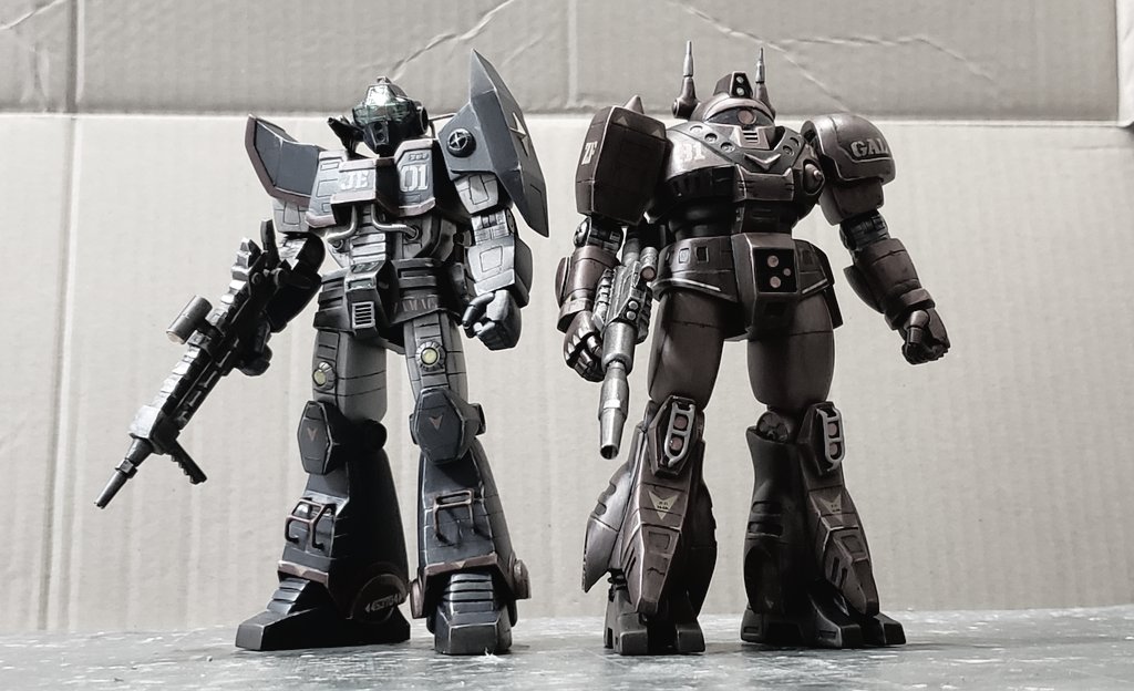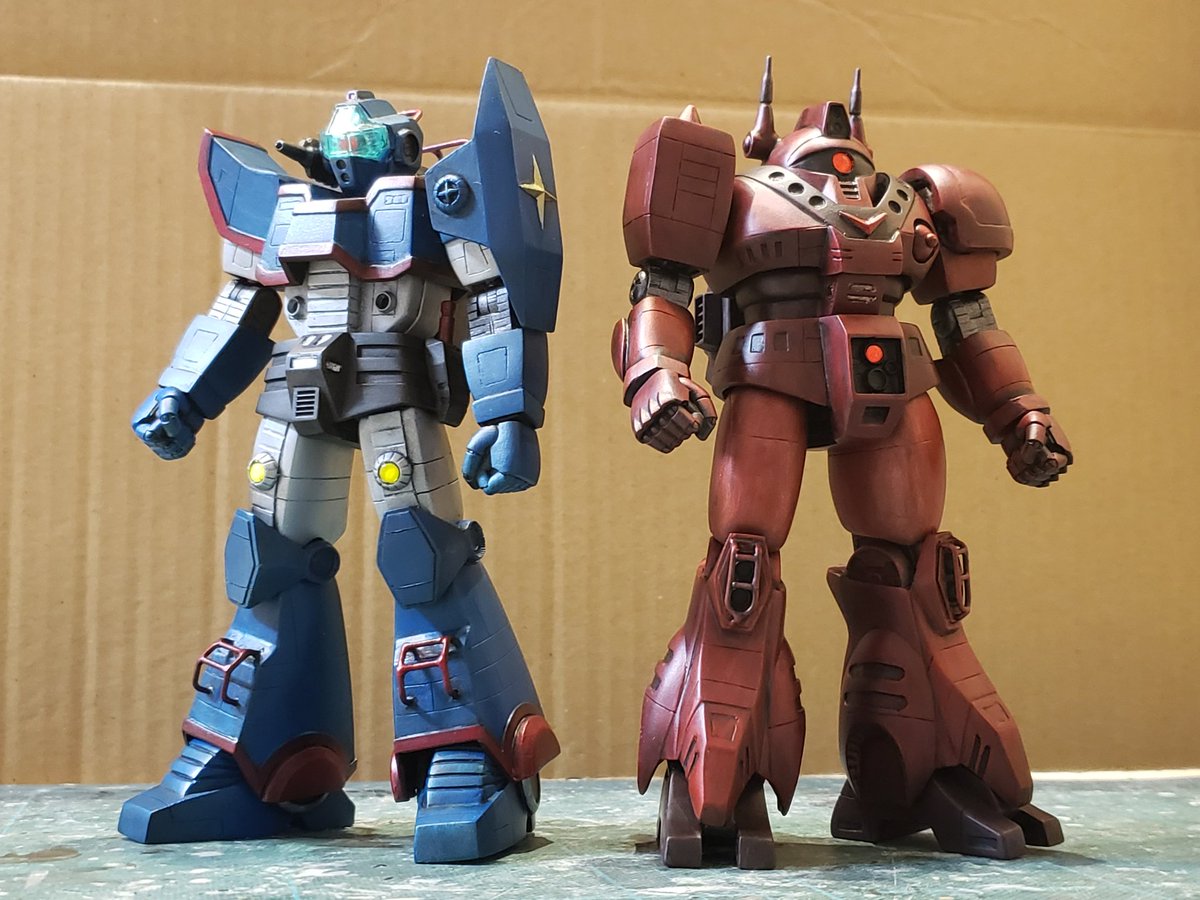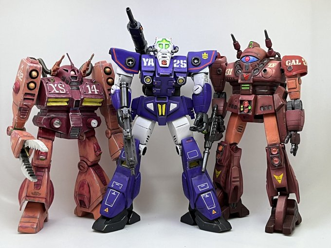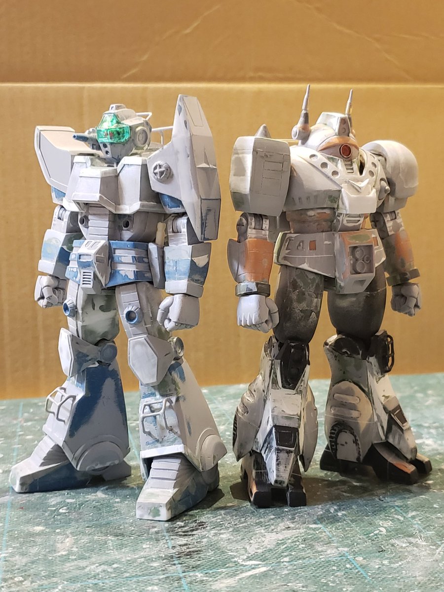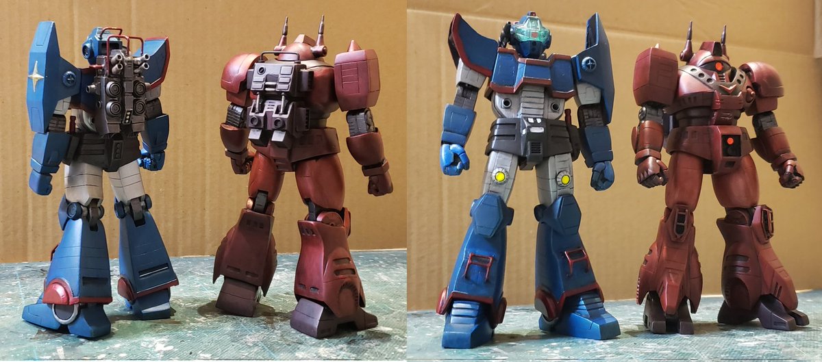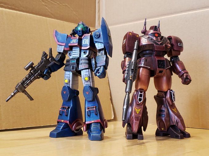 ジャウ・ザマックとバ・ガル、同じくらいのアングルでキットの完成写真と比べてみました。結構どんな感じで改造してるかわかりやすい気がします。特に背面はあまり見せてないかと思いますが結構頑張ってます😅 #酒餅12チャンネル #メガロザマック #旧キット twitter.com/holy_oden/stat…