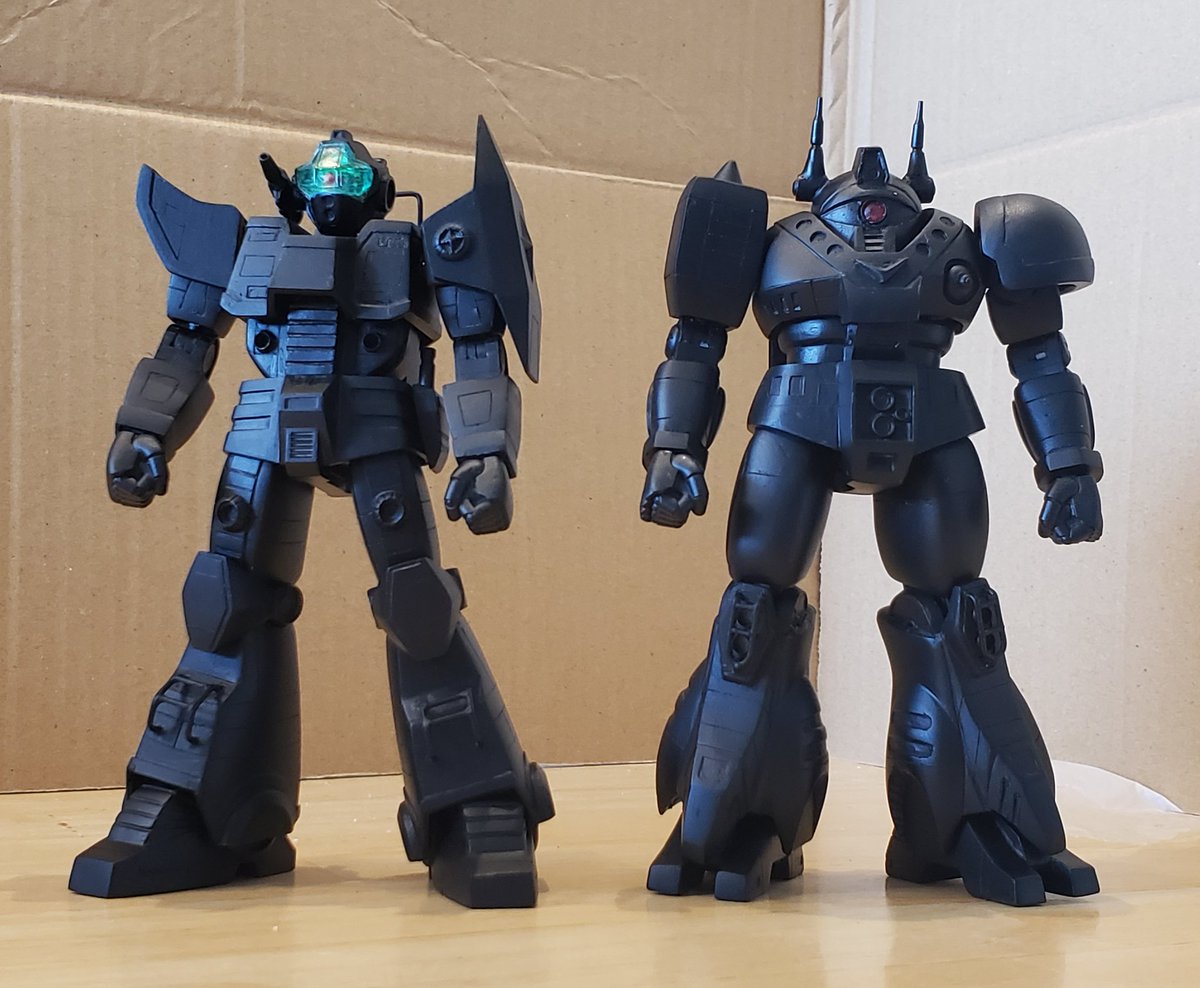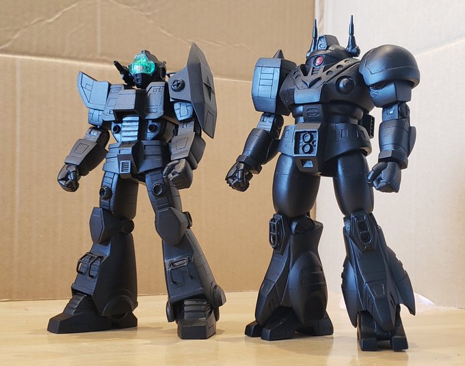 黒サフ吹いたジャウ・ザマック&バ・ガル、一旦組み上げてみました。。。これはかっこいいかも😍まだ表面処理がひどいとこがあるのでちょっと整えますが良い感じです!こう見るとバ・ガルって女性的ですね☺️まぁ今日の締め切りには間に合いませんが😅 #酒餅12チャンネル #ロボマニ #メガロザマック