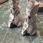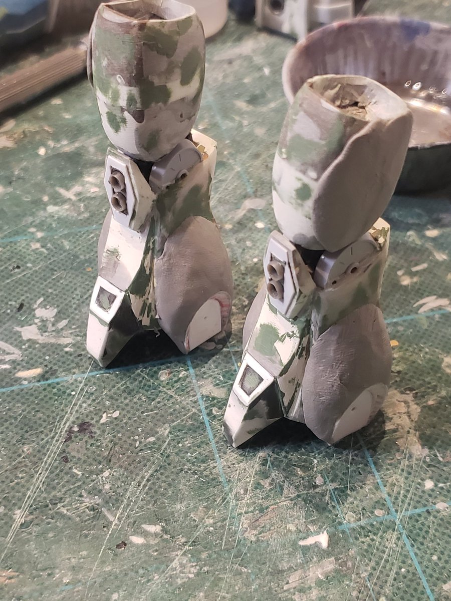 ジャウ・ザマック&バ・ガル進捗!今日は結構進めました!ジャウのライン部分、肘間接もキャタピラ模様に、ライフルもだいたい形にできました。ガルの方も膝アーマーのライト部分や肘間接の作成など。ディテールが入りかなりカッコ良くなってきました😊 #酒餅12チャンネル #ロボマニ #メガロザマック
