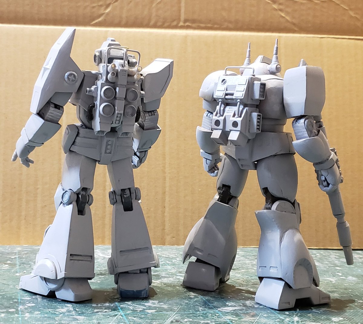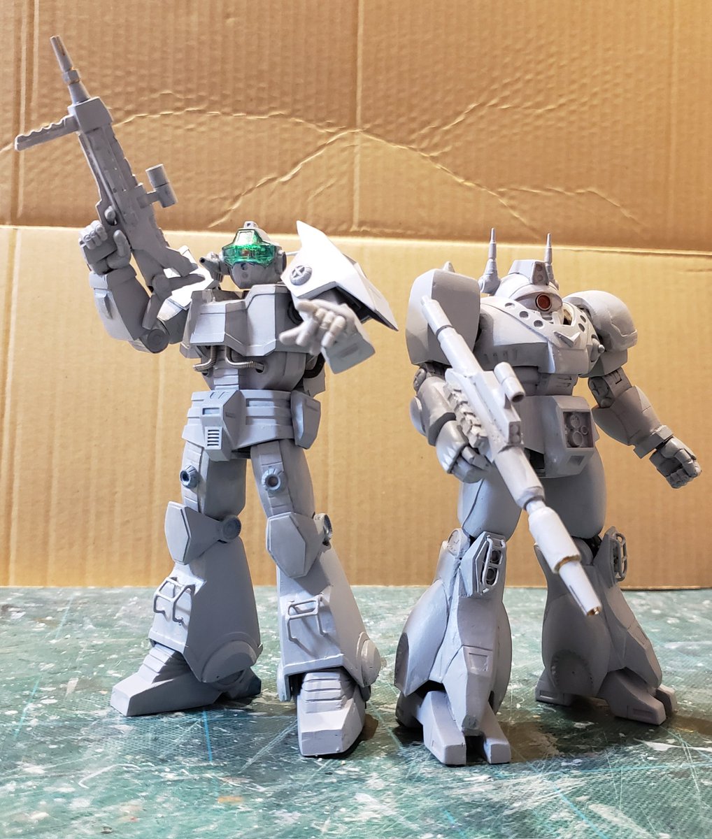 ジャウ・ザマック&バ・ガル進捗ー!ジャウのライフルを整え、ガルの武器をスクラッチ。一通り武器まで手が入ったので溶きパテ塗りましたが、悲しくなるほどまだダメダメでした😱(知ってたw)でもフォルムはいい感じになったので、表面処理頑張ります。。!#酒餅12チャンネル #ロボマニ #メガロザマック