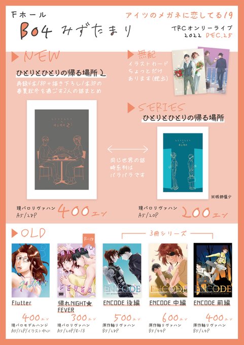 【#メガ恋19】お品書きです 詳細はこちら⬇️ pixiv.net/artworks/10378… ただ今無配を鋭意製作中です! 無事当日を迎えられますよう…🎄 どうぞよろしくお願いいたします!! (途中買い物のため離席することがあります🙇♂️撤収は14時頃を予定してます)