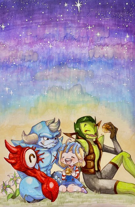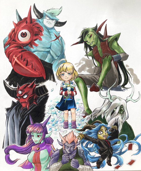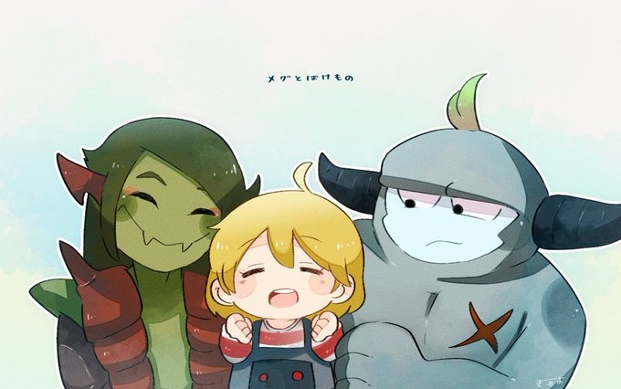 弊社スタッフyuzariが人気ゲーム「メグとばけもの(@Odencat_JPN)」のファンアートを描かせていただきました! 仲良し衣装交換♪メグは凛々しく、ロイはかわいらしく変…身…? #メグとばけもの #MegsMonster #LINEスタンプ販売中