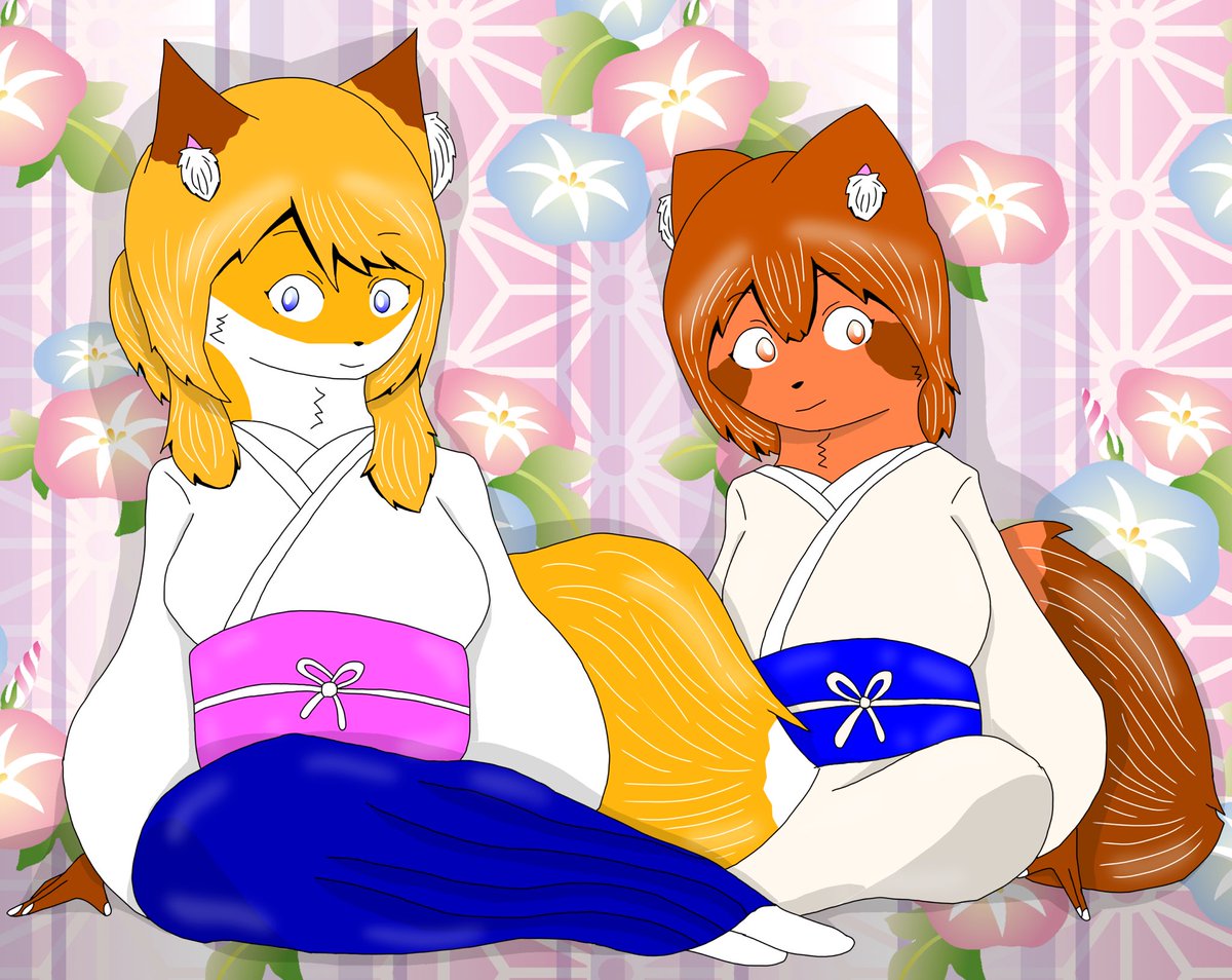 A picture for today. It's for you, @murasakidou. Aaaaah Bellna and Miyumi. 😍Happy summer season. #furryfandom #furry #furryartist #furryart #ケモノ #メスケモ