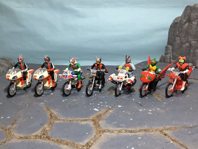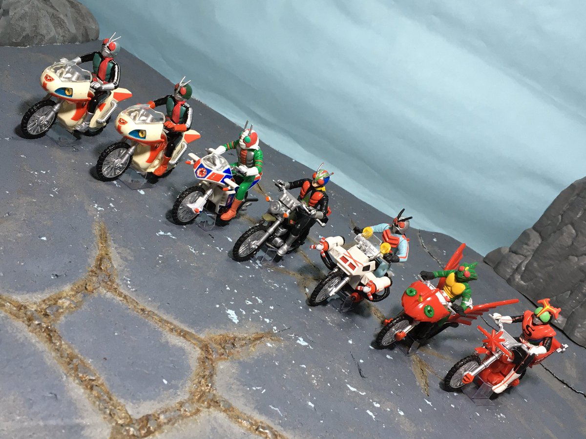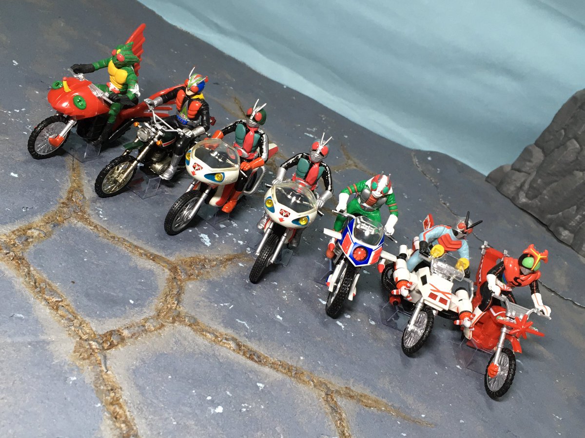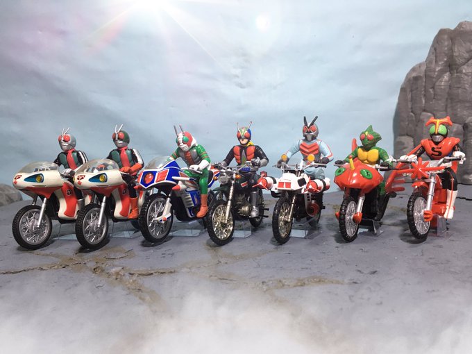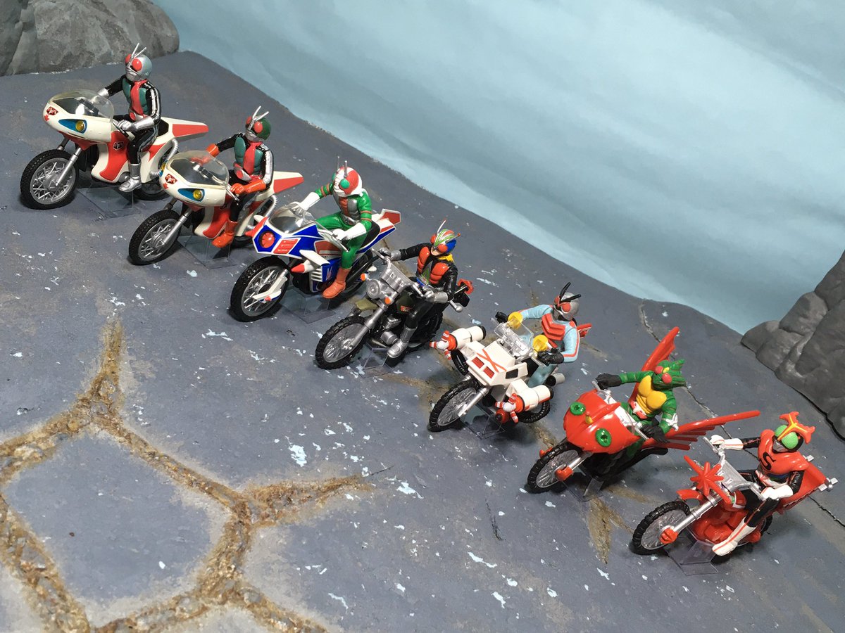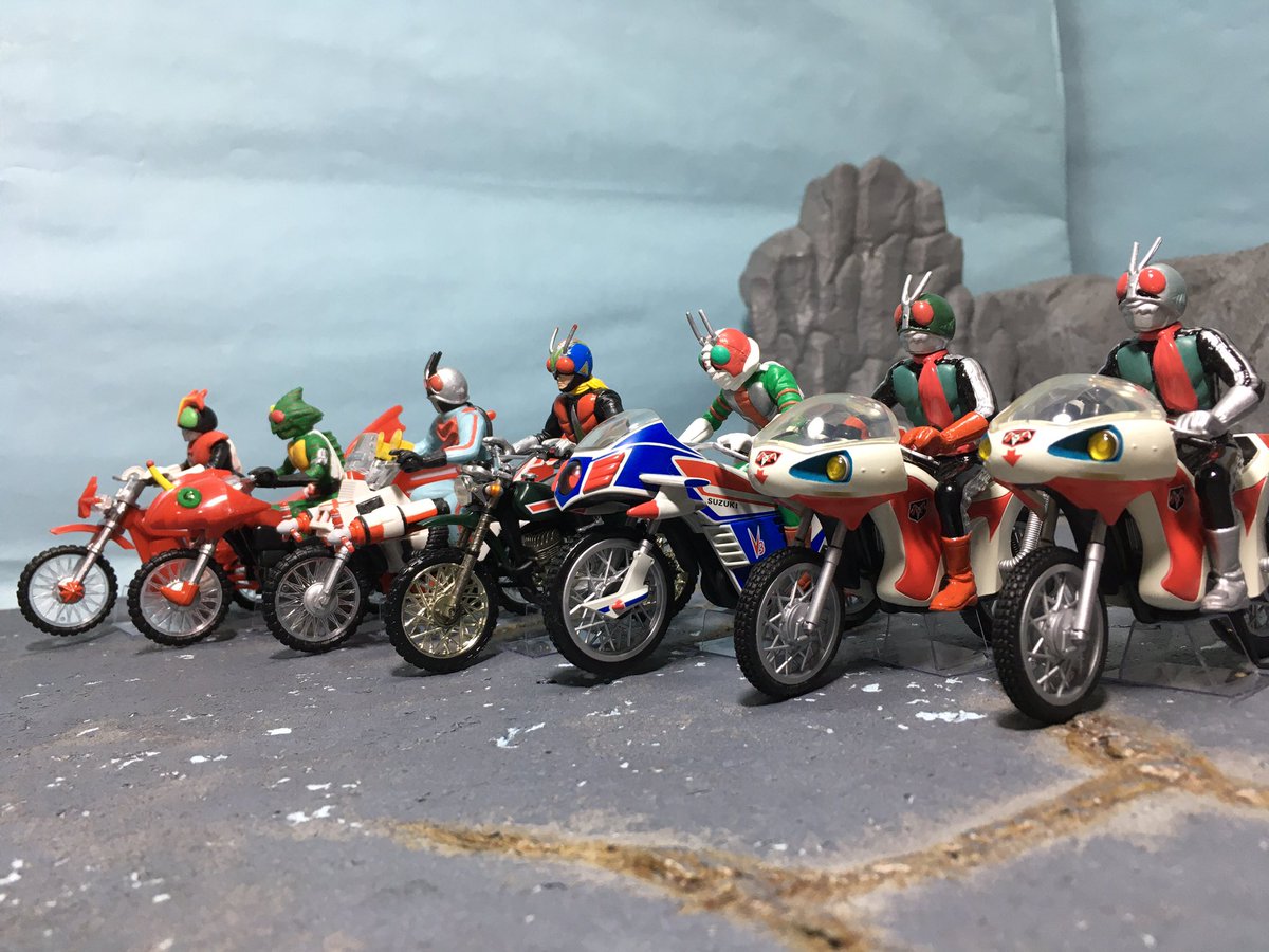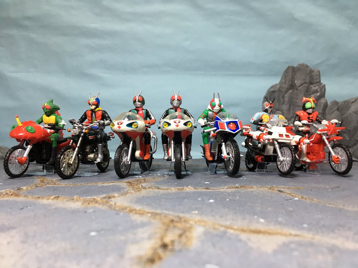 #おもちゃ撮影会 テーマ『バイク』 栄光の7人ライダーが集結! #仮面ライダー #仮面ライダーV3 #仮面ライダーX #仮面ライダーアマゾン #仮面ライダーストロンガー #ザ・ライダーマシン #ポピニカ #スーパーマシンシリーズ #メタルメカコレクション #オモ写