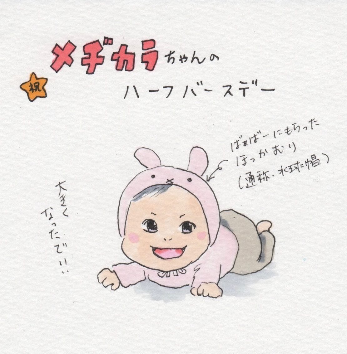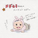 【メヂカラちゃんのハーフバースデイ(1/2)】時差投稿ですが無事迎えました!おめでとう!4コマに続きます→ #育児漫画 #育児絵日記 #漫画が読めるハッシュタグ #我が家のロックちゃん #メヂカラちゃん #ハーフバースデイ