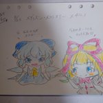 アナログイラスト360日目はメディ×チルノ! 原稿が終わり、毒でも打たれたかのように衰弱してたので、メディを描きました♪ メディといえば毒を操る能力をもってますが、チルノちゃんにも有効なのか…、はたまた恋する毒とか操ってしまうのか… #東方Project #チルノ #メディスン・メランコリー