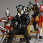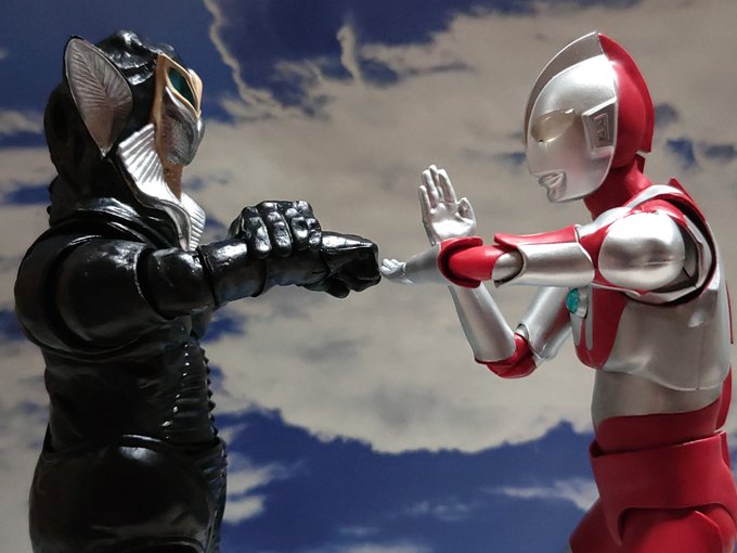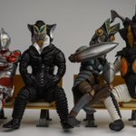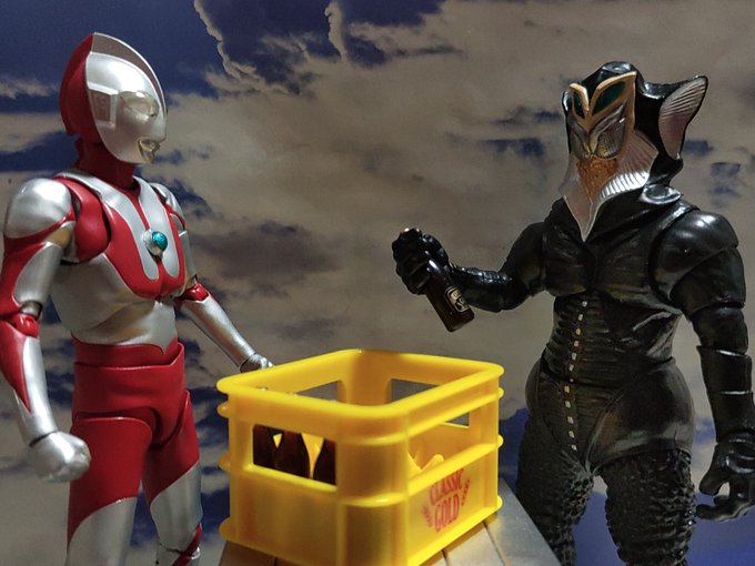 #夜のフィギュア撮影会 テーマ「眠」 ウルトラマン、今日はただ飲もう。 いいだろう、メフィラス。 ~数時間後~ もう飲めないぞ、ウルトラマン。 おいメフィラス、こんな所で眠るな。 #ウルトラマン #メフィラス星人