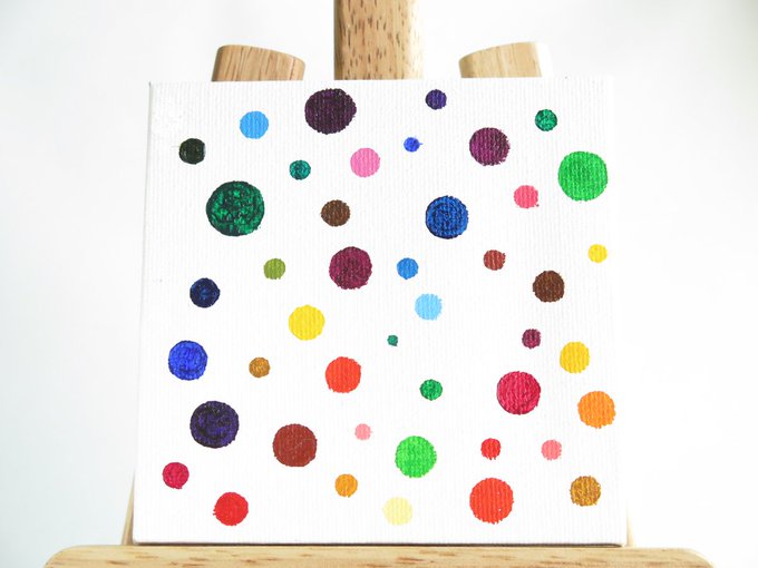 💧🎨 * 雨粒に 色がついていたら 世界は もっと 鮮やかに なっただろうか? * 『雨粒』 [10×10cm,キャンバス,アクリル絵具] [原画 ¥4,000] #アート好きな人と繋がりたい #カラフル #水彩画 #メルカートインガレリア #ギャラリールデコ 9/5-11出展@渋谷