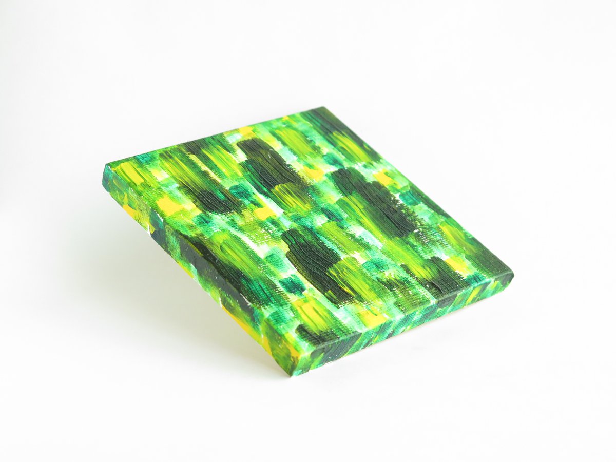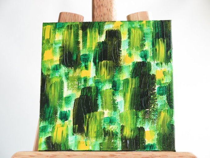 🍀🎨 * 緑色のメッセージ🌿 『ありのままの自分』 * 『beyourself』 [10×10cm,キャンバス,アクリル絵具] [原画 ¥4,000] #アート好きな人と繋がりたい #カラフル #水彩画 #メルカートインガレリア #ギャラリールデコ 9/5-11出展@渋谷