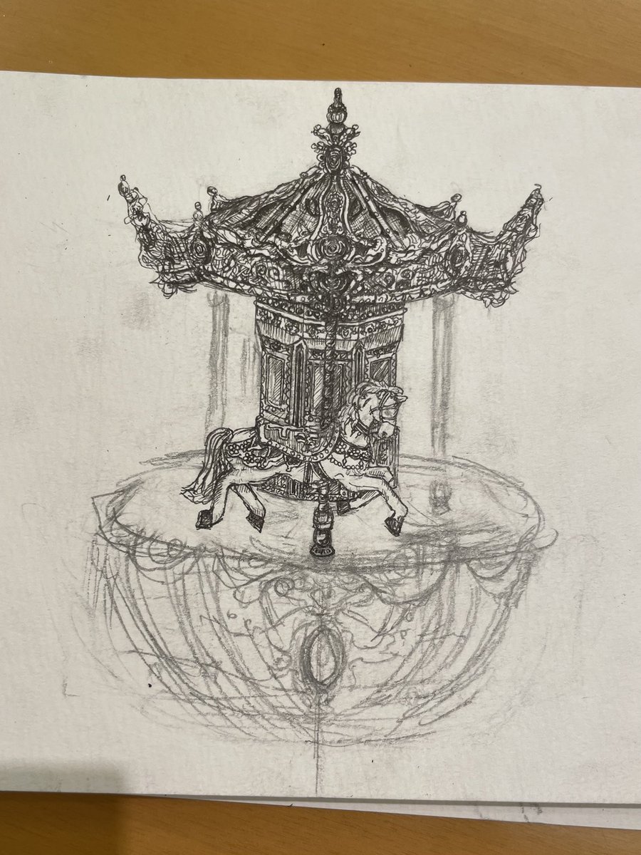 書き途中のメリーゴーランド 明日完成系出します #冬の創作クラスタフォロー祭り #絵描きさんフォロバ #ペン画 #メリーゴーランド #メリーゴーランドイラスト #メリーゴーランドペン画 #メルヘンイラスト