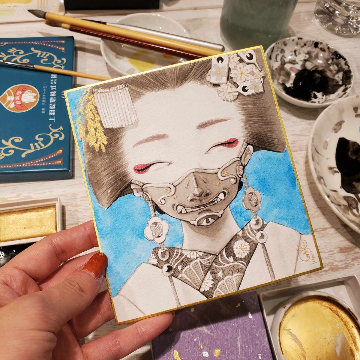 #メルメリィアンテナShop に向けて搬入準備中です。新作のグッズとしてキャンバスプリントを制作しました!何度か試作して理想の色に作れたと思います☺️ 画像の水彩原画4作品の展示(内1作品販売)とグッズ販売を予定しているのでぜひ足を運んでいただけると嬉しいです…!