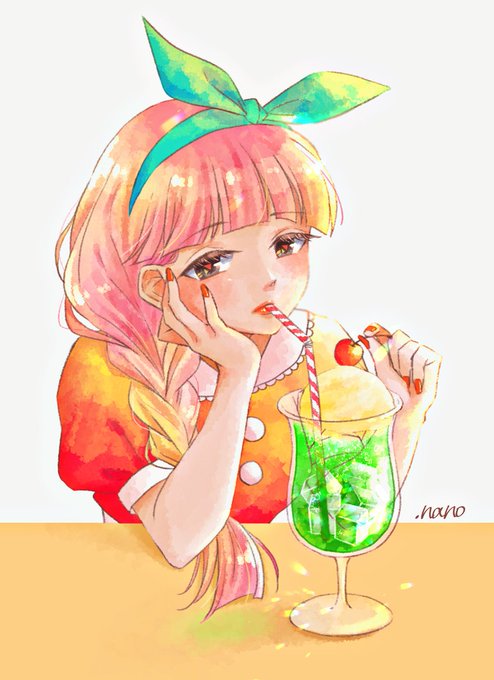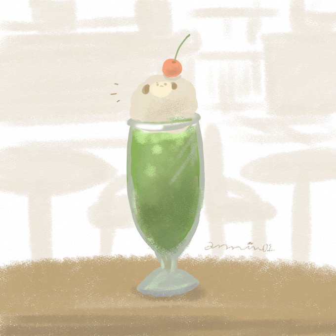 ほのぼのメロンひつじソーダ ほのぼのひつじはどこでしょう(^-^)? かんたんですね^ ^ #イラスト #ゆるいイラスト #ほのぼのひつじ #メロンクリームソーダ #イラスト好きさんと繋がりたい