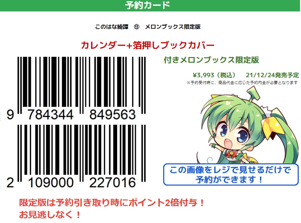 #このはな綺譚 メロン限定版は数に限りがあるので、必ず『早めに』ご予約ください。 下の画像↓を #メロンブックス のレジで見せるだけで簡単に予約できます。 通販はこちらですmelonbooks.co.jp/detail/detail.…