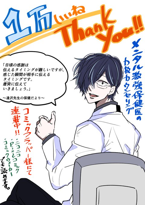#メンタル激強保健医の力技カウンセリング comic.pixiv.net/works/8401 #pixivコミック 1万いいね突破ありがとうございます! 現在1~5話公開中なのでご覧下さい~👍