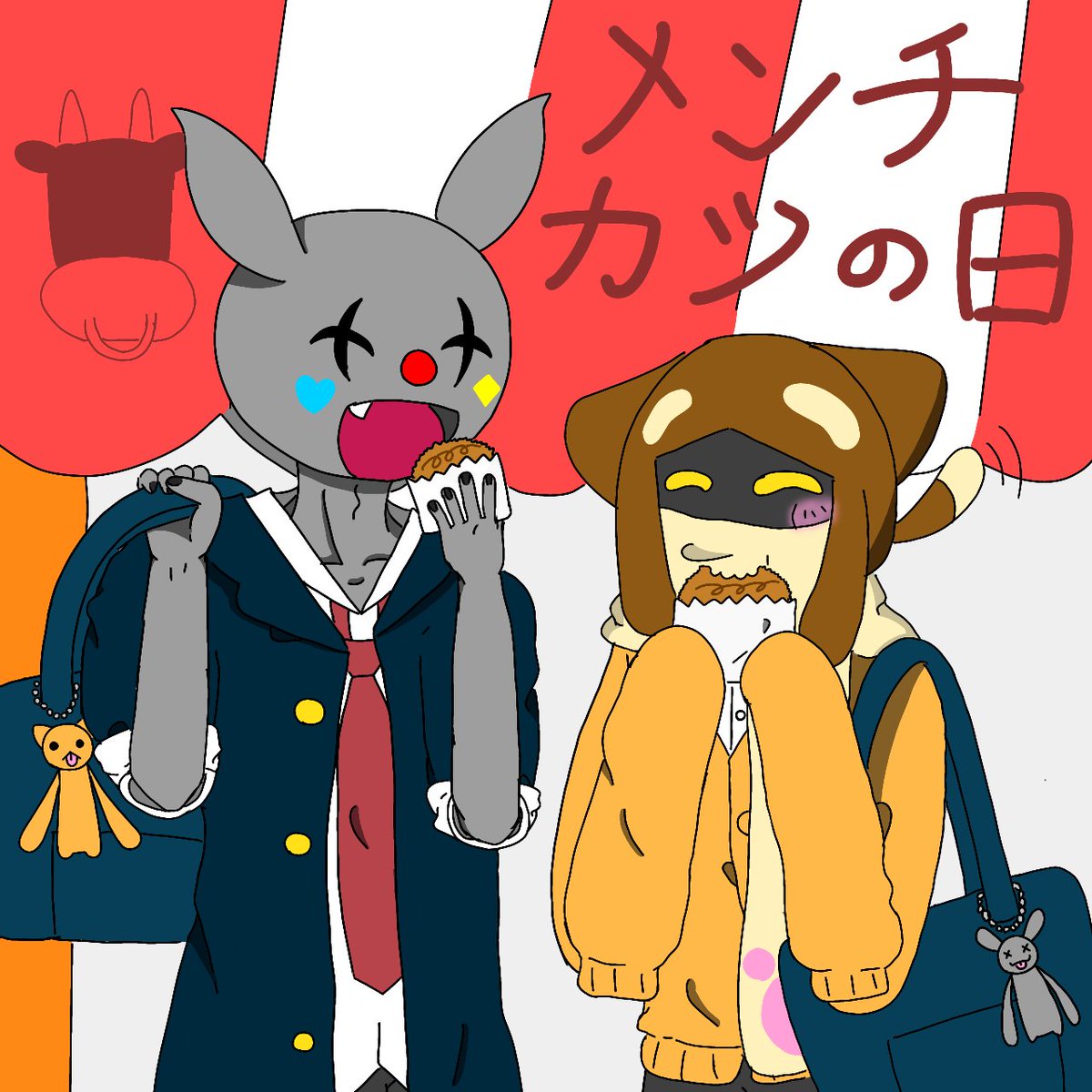 ※学パロ風かなぁ 注意! 記念日イラスト109枚目 本日3月7日は #メンチカツの日 自分的にはヤオコーさんのメンチカツがんまんまです! ご飯いっぱい食べちゃいます✨🍚ŧ‹”ŧ‹”(๑´ㅂ`๑)ŧ‹”ŧ‹” #bintrollFA