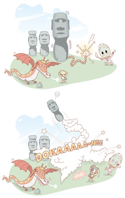 懐かしみを感じるゲームキャラ擬人化シリーズ『懐みKAN』 今回はこのキャラ! わかるかな?わっかんねーだろーなぁ( ੭˙ᗜ˙)੭ #レトロコンシューマー愛好会イラスト部 #レトロゲーム #懐みKAN #モアイ #レトロコンシューマー愛好会 #メディアマックス友の会