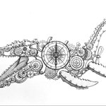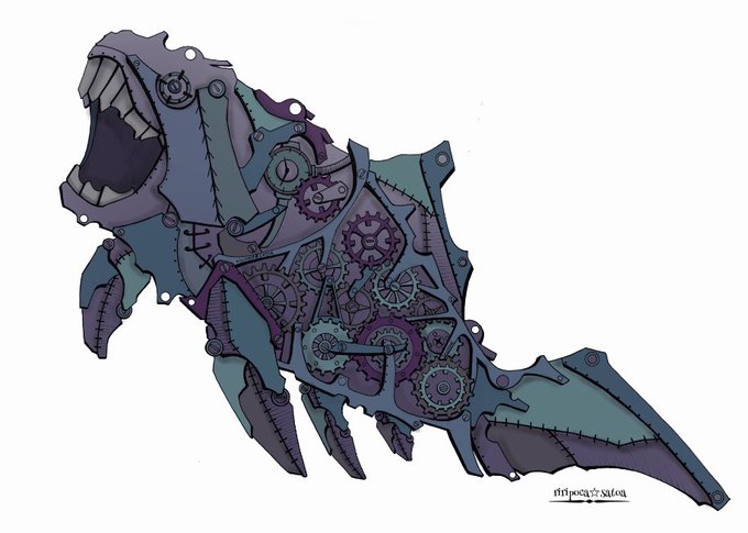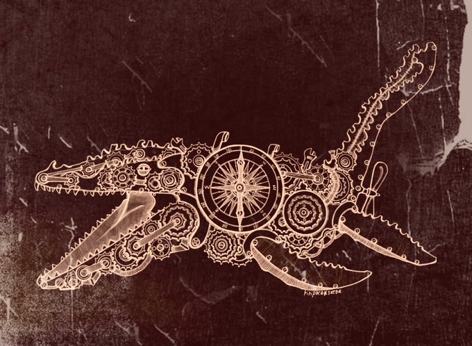 おはようございます(´∀`) 今日もよろしくお願いします♪♪ ⚙モササウルス⚙ #スチームパンクイラスト #歯車イラスト #モササウルス #ペン画 #今日もがんばろ #アトリエの系譜S #アトリエの系譜plus