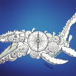 おはようございます*\(^o^)/* 今日もよろしくお願いします♪ ⚙モササウルス⚙ #古代生物 #モササウルス #スチームパンクイラスト #歯車イラスト #ペン画 #新春私の作品広まれ祭り