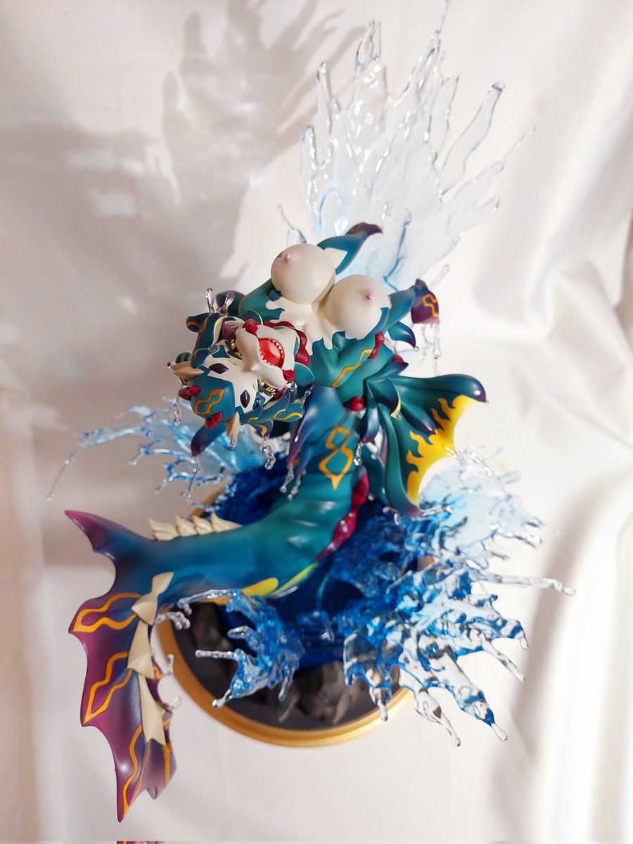 恐竜娘モサ完成しましたぁ~(^-^)/🎉 UV硬化レジンでデコレーションした展示用の豪華バージョンです(^o^)💕 これは是非ともイベント会場で現物を見てもらいたい(#^.^#)v🎶 #WF2022S #オリジナルフィギュア #モササウルス