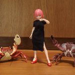 桜もキレイに咲いてきたことですし(*´ω`*)ここらで娘をお外デビュー(人*´∀`)。*゚+ #モチファク 様のお洋服を着せて、桜っポイデザートと飲み物で小道具使ってみました。 #エクスキューショナー #メガミデバイス