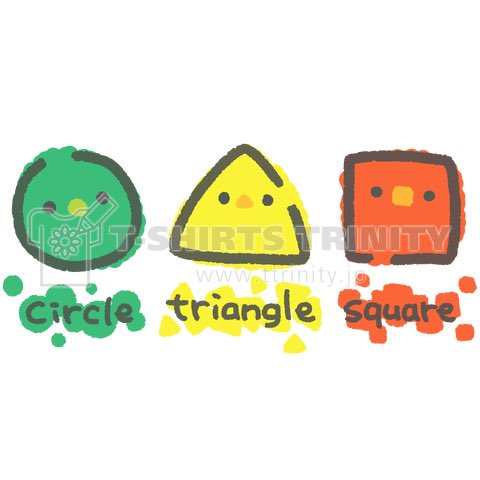 #Tシャツトリニティ にて新作追加しました🐥Tトリver.は文字が英語です✨ まる さんかく しかく(えいご) まる(circle)、さんかく(triangle)、しかく(square)それぞれの図形をモチーフにデザインされた可愛らしい鳥たち。#図形 #鳥 #イラスト #かわいい #シンプル #モチーフ ttrinity.jp/shop/chills_fa…