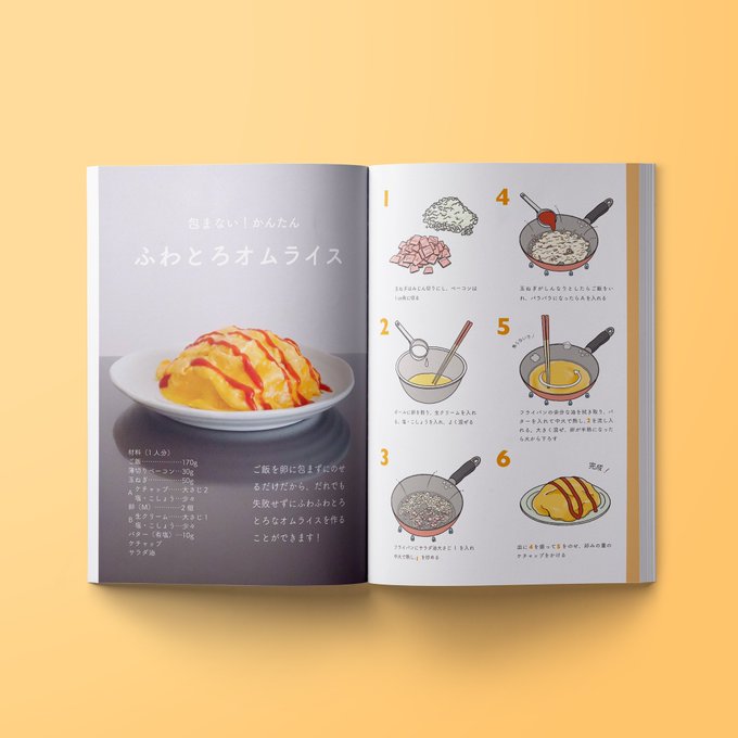 架空のお仕事で、料理記事を作成しました🌷 オムライスの写真めちゃくちゃ撮りました!(笑)編集者時代に使ってたテーブルクロスがシワになってて使えなかったの残念ですが…イラストと合わせて美味しそうに見えたら嬉しいです!🍳 #イラスト #illustration #モックアップ