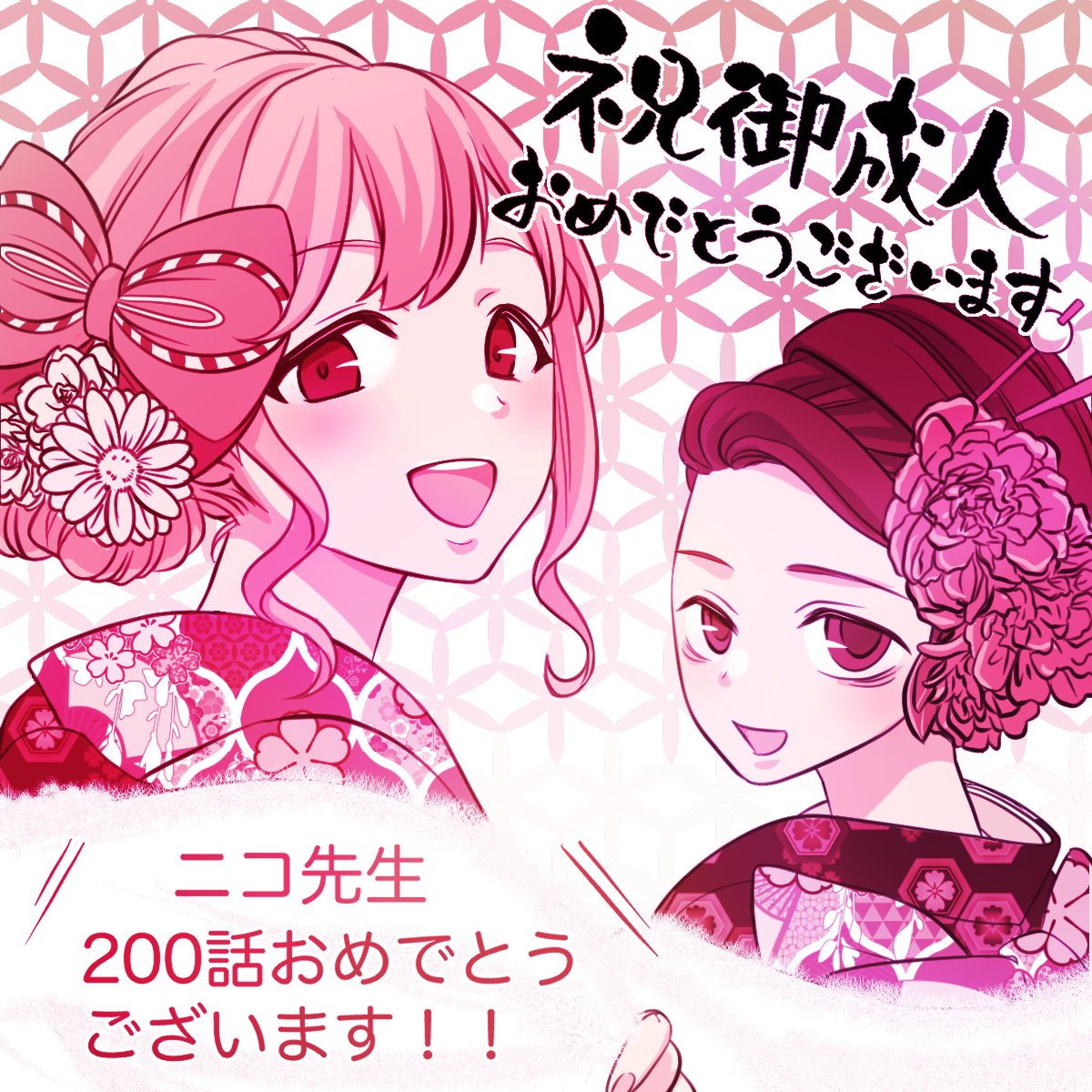 喪200!おめでとうございます 10年後も変わらず連載していることを願って成人した二人を描いてみました と思っていたら今度から成人は18歳になるんですね😓 #モテないしワタモテ川柳詠んでみる 10周年 気がつけばすぐ 20年 #モテないしワタモテイラスト描いてみる #わたモテ