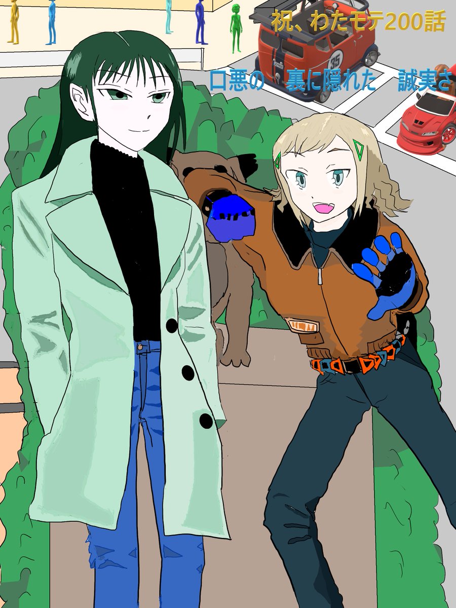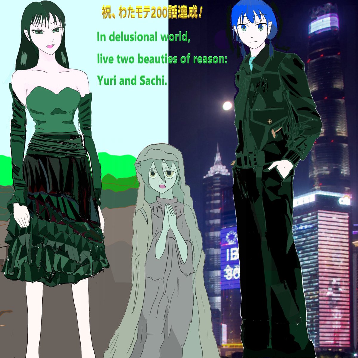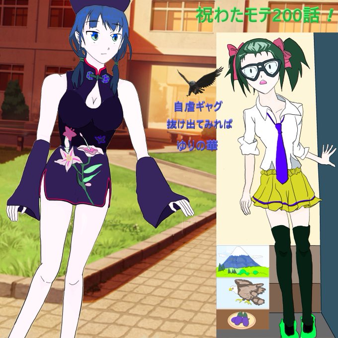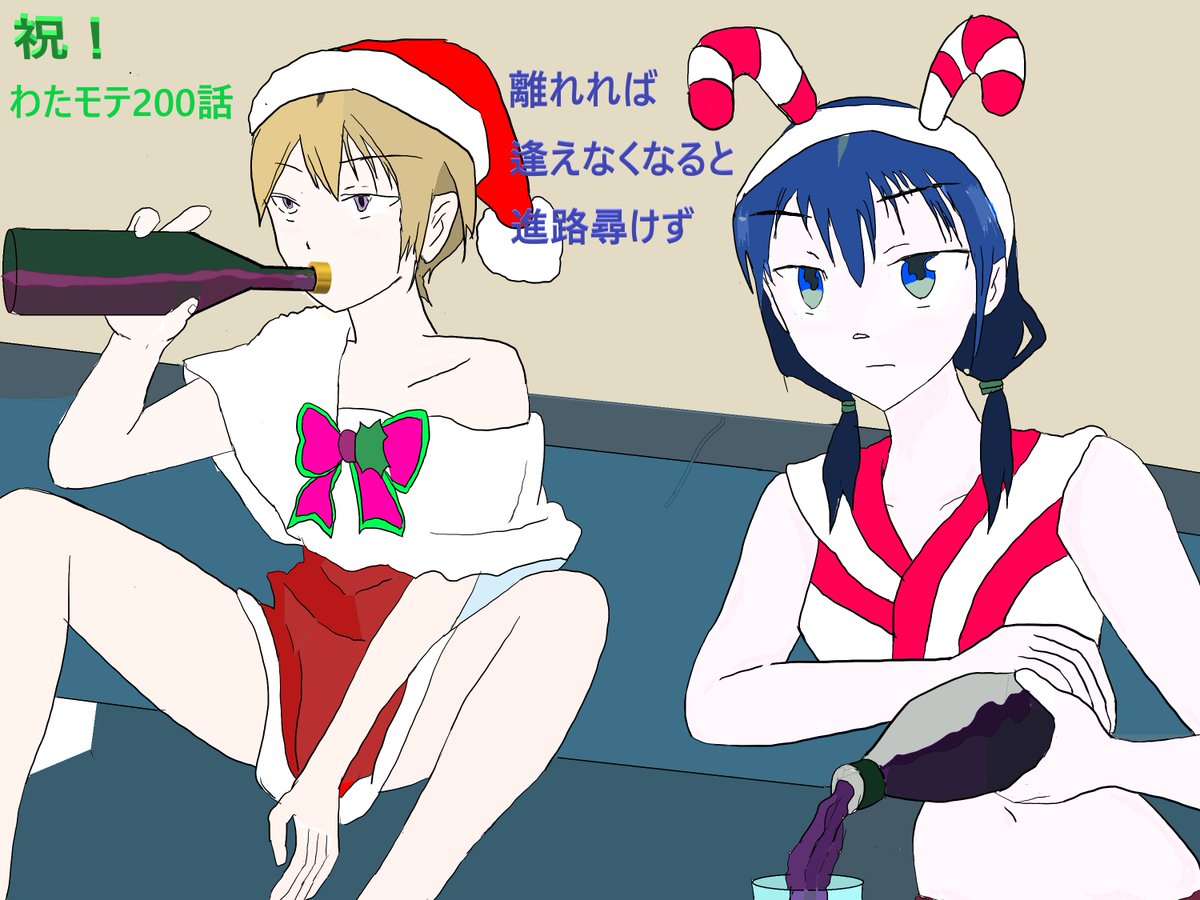 #モテないしワタモテイラスト描いてみる! #ワタモテ #モテないし10周年 #モテないしワタモテ川柳詠んでみる! 祝!200話突破!英語川柳 “In delusional world, Live two beauties of reason: Yuri and Sachi.” (音節数: 6;7;5. 字余り) 日本語版: “妄想の わたモテ界に 有理才智”(字余り)