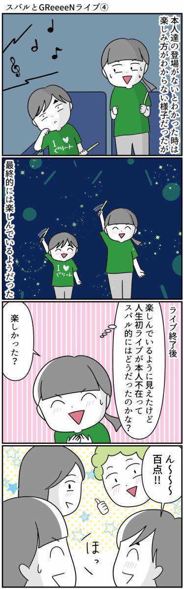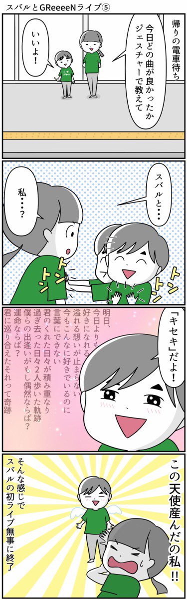 #GReeeeNと不思議な大脱走 #GReeeeN #ももクロ #モノノフ #初ライブ #自閉症スペクトラム #漫画が読めるハッシュタグ スバルと初ライブに行く話2/3 モノノフもGR CREWも優しいです😊 ライブの帰り道天使と出会った